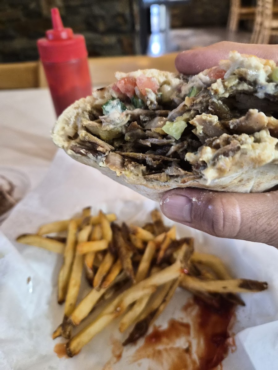The menu leans heavily into Mediterranean comfort food, with pita sandwiches, shawarma plates, falafel, hummus, and grilled meats that are prepared right in front of you. What stands out is the freshness. The vegetables are crisp, the herbs smell alive, and the pita comes out warm and soft instead of stiff or dry. During one visit, I watched the kitchen prep chicken shawarma in small batches rather than stacking it for hours, a method many food safety experts recommend to preserve moisture and reduce bacterial risk. According to USDA food handling guidelines, smaller batch cooking helps maintain both flavor and safety, which explains why the meat here stays juicy even during busy hours.